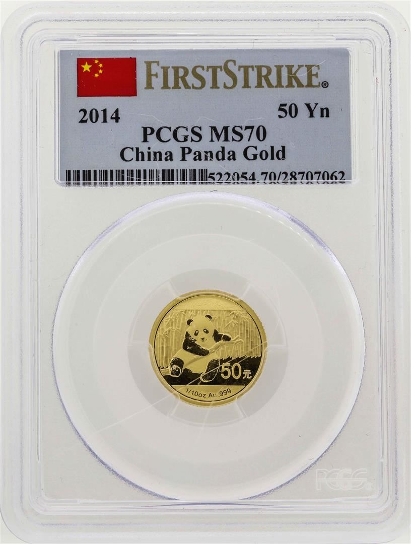 One 2014 China 1/10 oz. Panda Gold Coin PCGS MS70 First Strike. PCGS Graded.