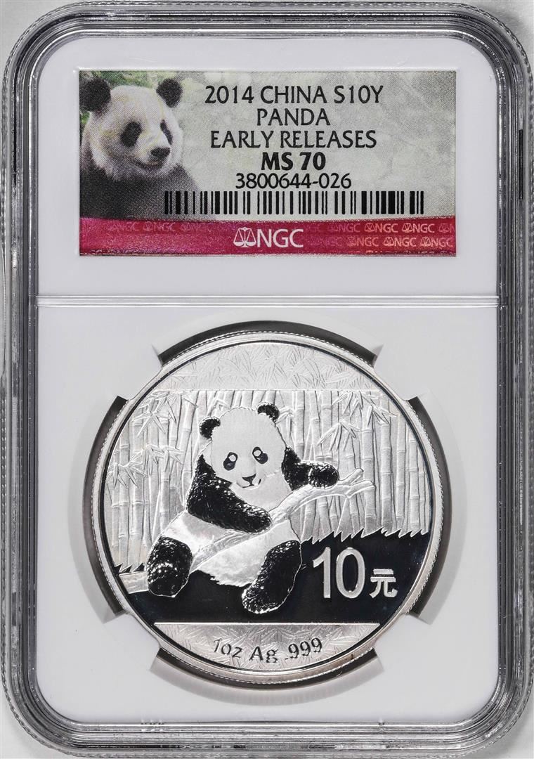 One 2014 China 10 Yuan Silver Panda Coin NGC MS70 Early Releases. NGC Certified.