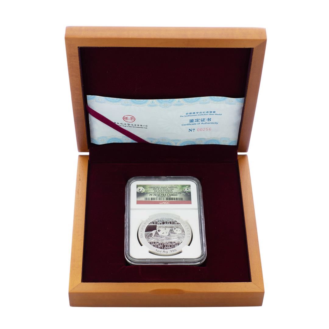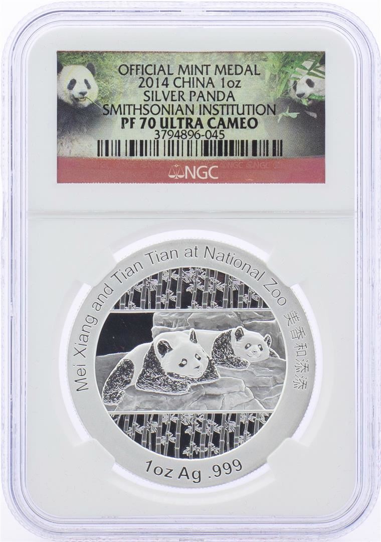 One 2014 China Silver Panda Smithsonian Institution Medal NGC PF70 Ultra Cameo w/Box & COA. NGC Certified.