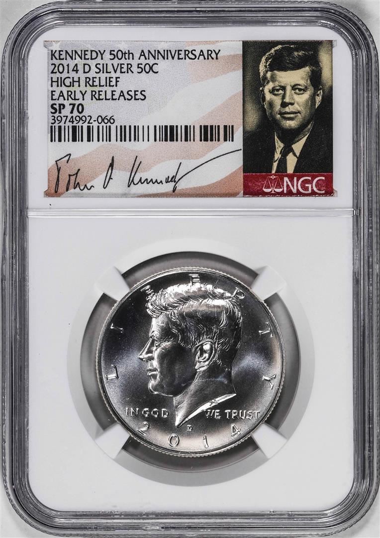 2014-D High Relief Kennedy Half Dollar Coin NGC SP70 Kennedy Signature