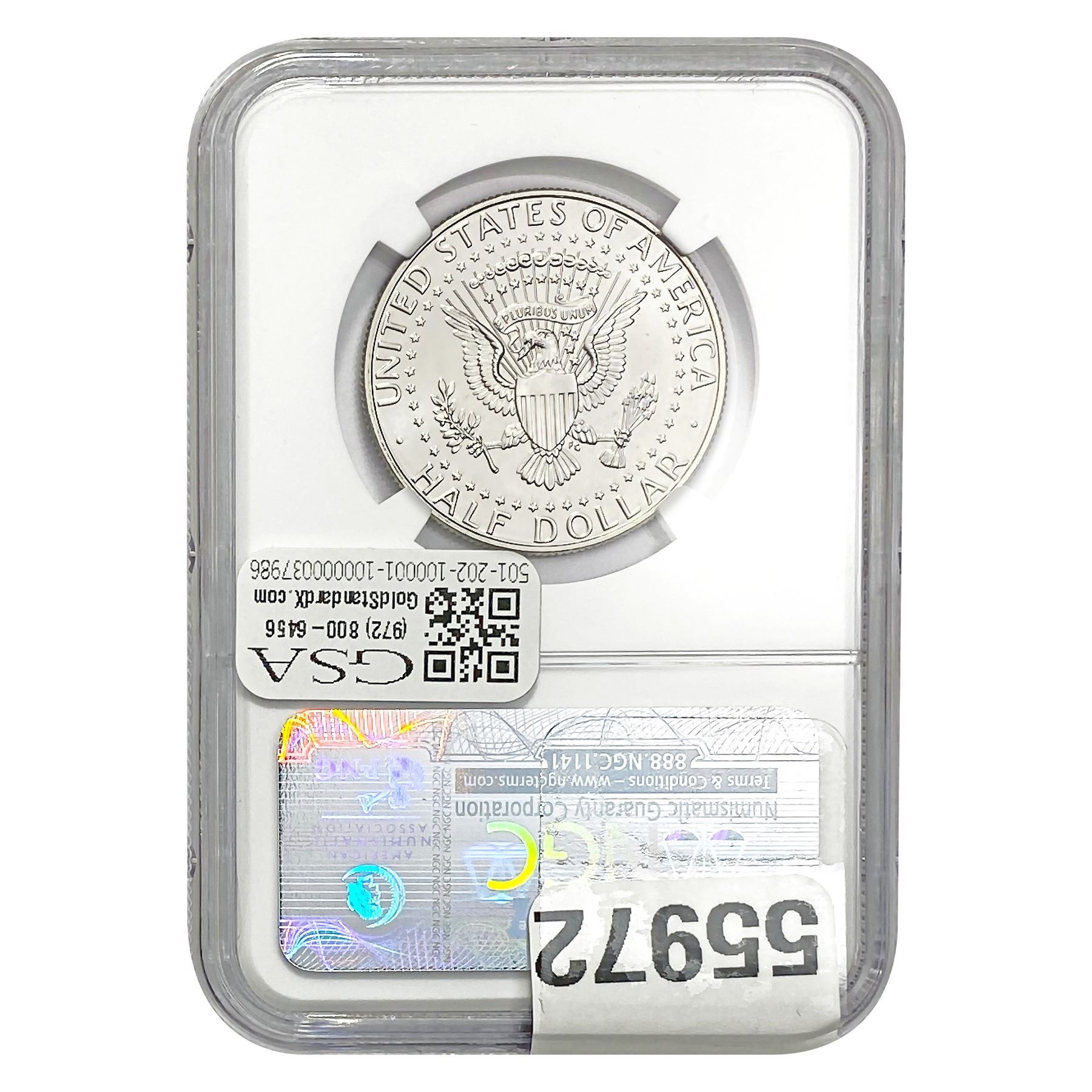 e. Coins sold referencing a third-party grading service are sold “AS IS” without any express or implied warranty, except for a guarantee by GSA that they are genuine. Removal or alteration of the holder, voids all of Bidder’s claims concerning that Product. Certain warranties may be available from the grading services and Bidders are referred to them for further details: Numismatic Guaranty Corporation (NGC), PO Box 4776, Sarasota, FL 34230, www.ngccoin.com/services/writtenguarantee.asp; Professional Coin Grading Services (PCGS), PO Box 9458, Newport Beach, CA 92658, www.pcgs.com/guarantee.html; ANACS, 6555 S. Kenton St., Ste. 303, Englewood, CO 80111; and Independent Coin Grading Co. (ICG), 7901 East Bellview, Ave., Suite 50, Englewood, CO 80111.