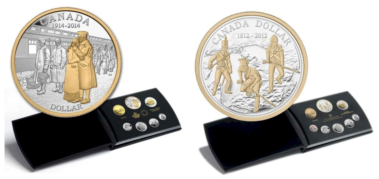 2014 Declaration of the First World War, 100th Anniversary & 2012 The War of 1812, 200th Anniversary - Pure Silver Proof Sets.