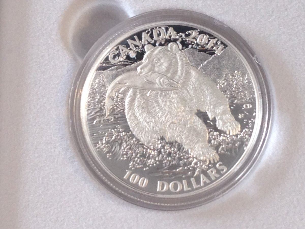 2014 fine silver 9999 $100 Grizzly Bear