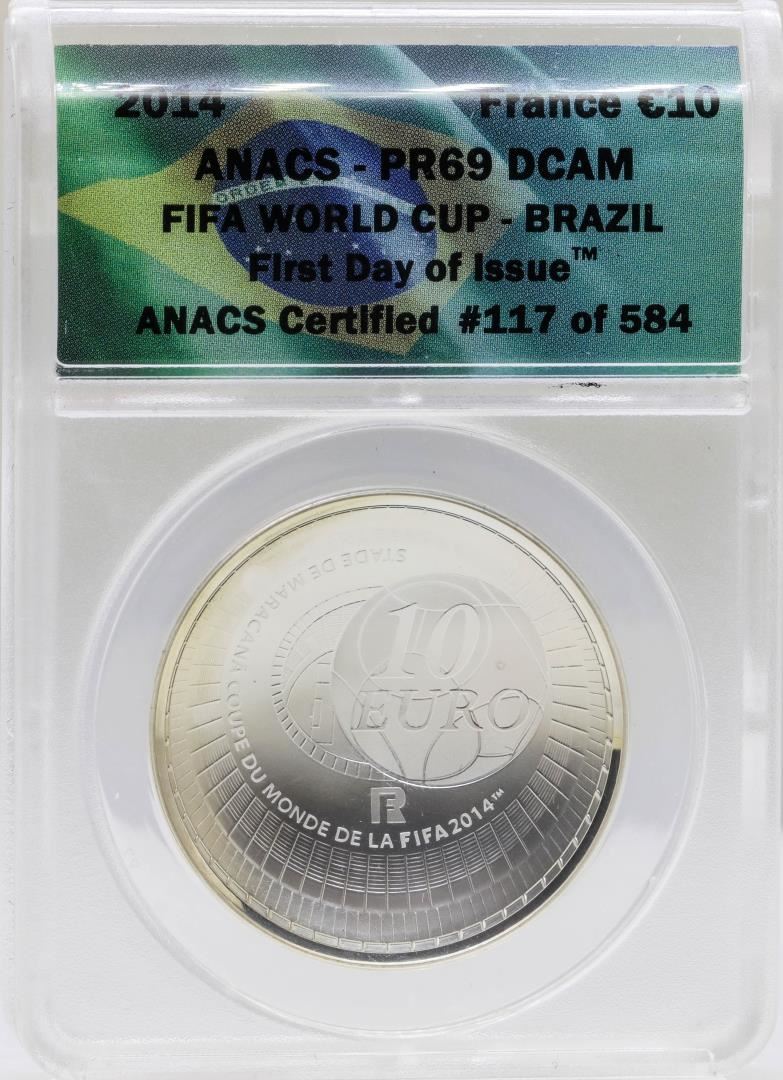 2014 France 10 Euro Proof FIFA World Cup Brazil Silver Coin ANACS PR69DCAM FDOI