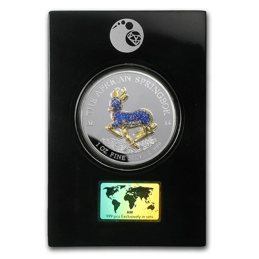 2014 Gabon 5-Coin 1 oz Silver Springbok Pavé Proof Set