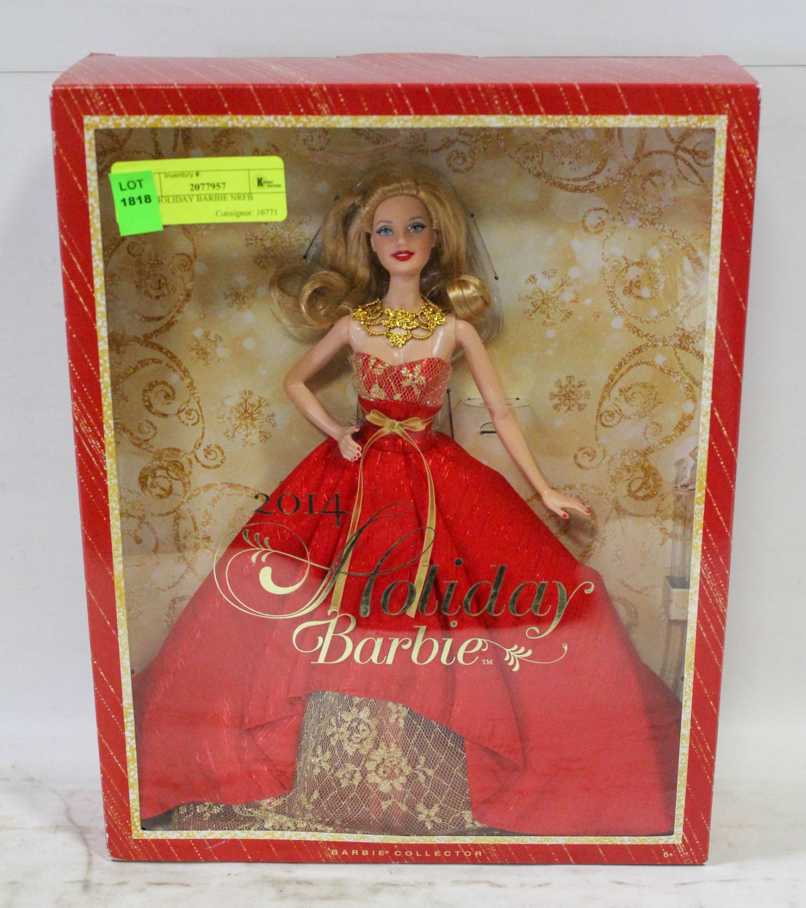 NEW 2014 HOLIDAT BARBIE. BLONDE EDITION. NEVER REMOVED FROM BOX.**ALL ITEMS MUST BE REMOVED BY 5PM SATURDAY, JULY 19TH 2025. ALL REMAINING ITEMS WILL BE SUBJECT TO A $6.00 PER DAY STORAGE CHARGE. ANY ITEMS REMAINING AFTER MONDAY, AUGUST 4TH, 2025 WILL BE CONSIDERED FORFEITED. NO REFUNDS WILL BE ISSUED FOR FORFEITED ITEMS. TO SCHEDULE A PICK UP APPOINTMENT CLICK HERE