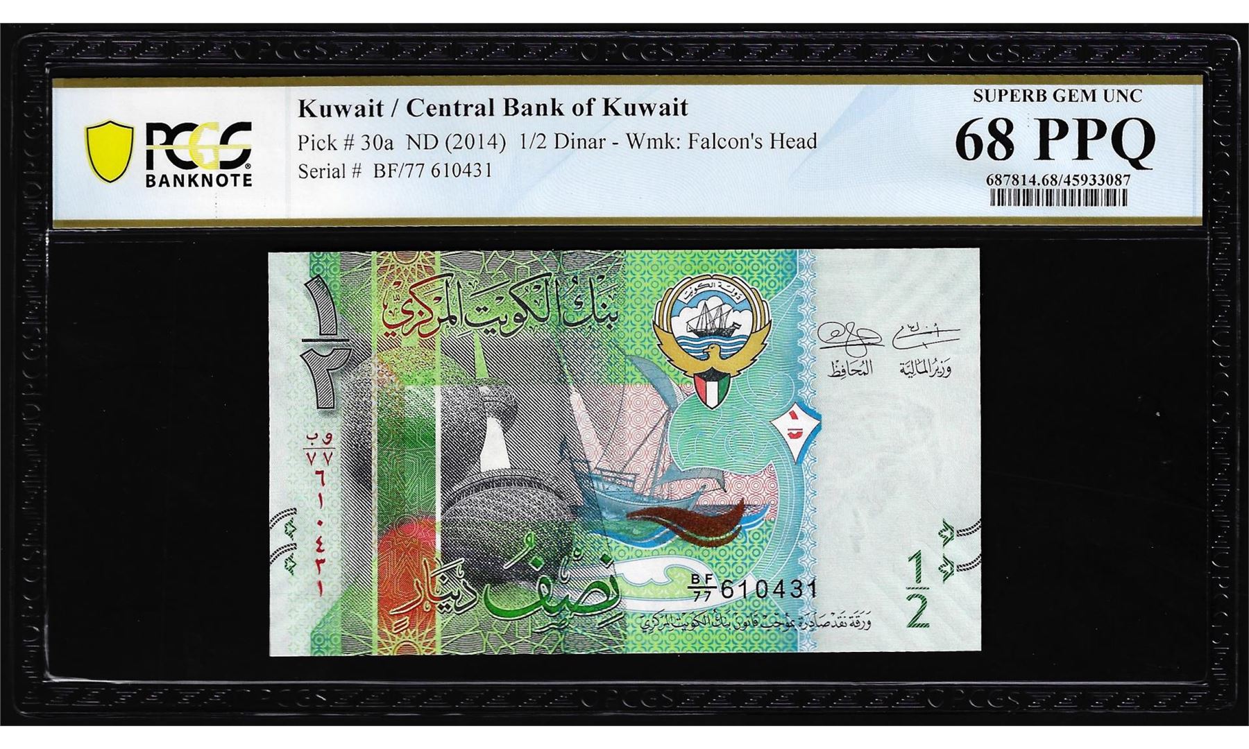 2014 Kuwait 1/2 Dinar Note Pick# 30a PCGS Superb Gem Uncirculated 68PPQ
