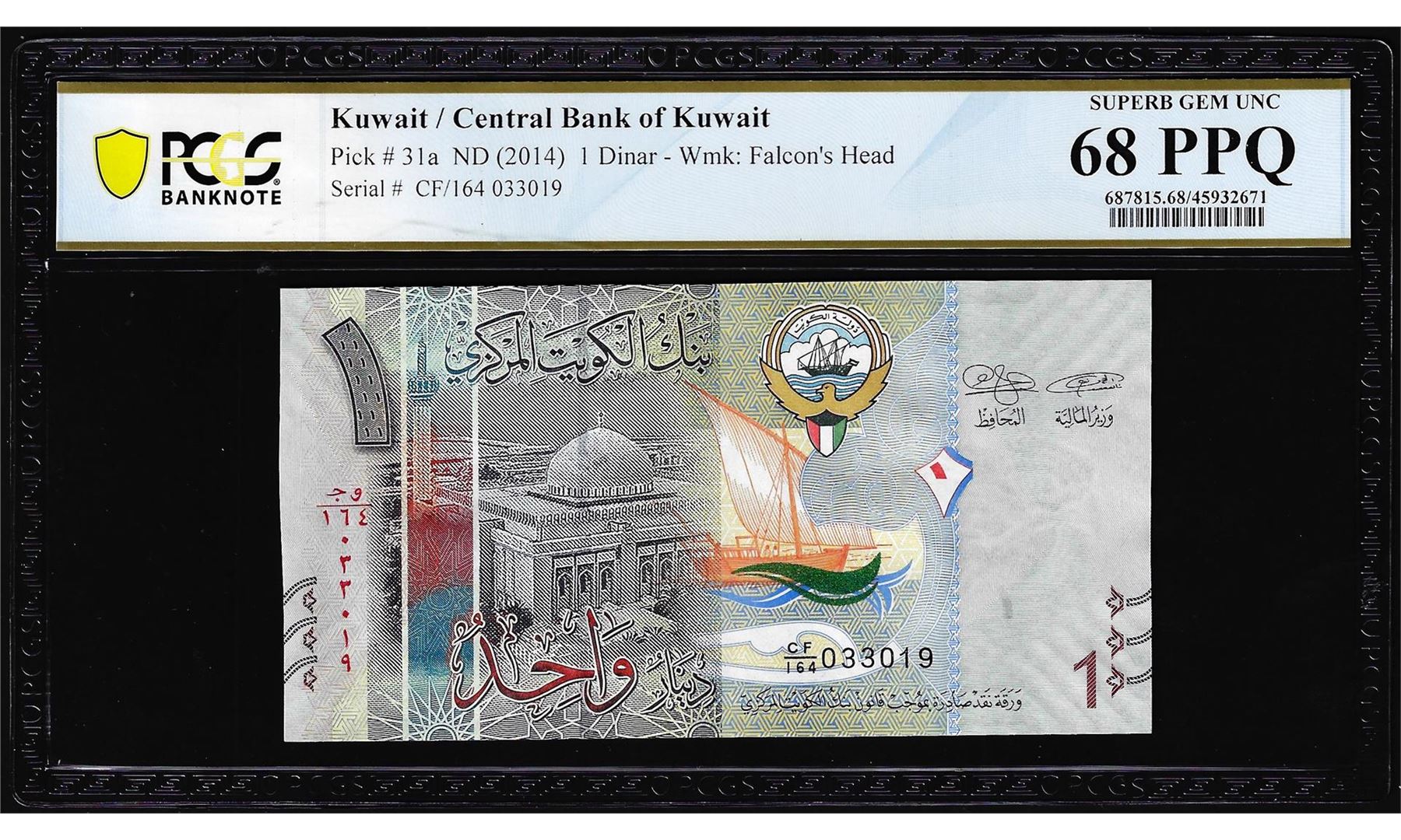 2014 Kuwait 1 Dinar Note Pick# 31a PCGS Superb Gem Uncirculated 68PPQ