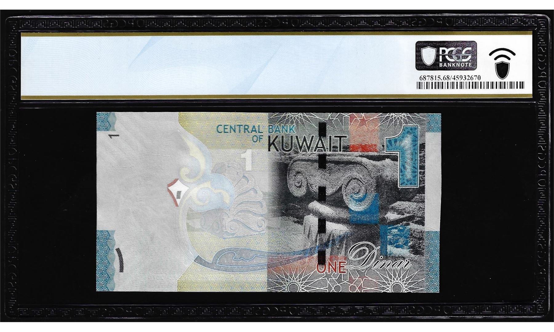 One 2014 Kuwait 1 Dinar Note Pick# 31a PCGS Superb Gem Uncirculated 68PPQ. PCGS Graded.