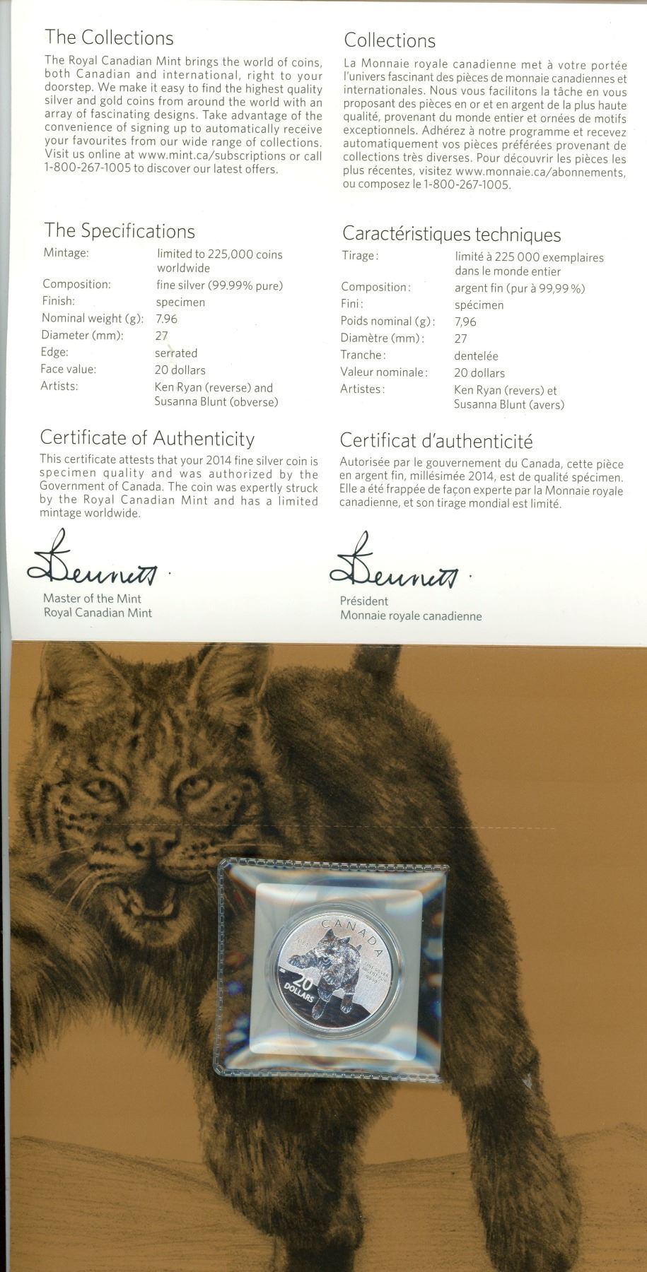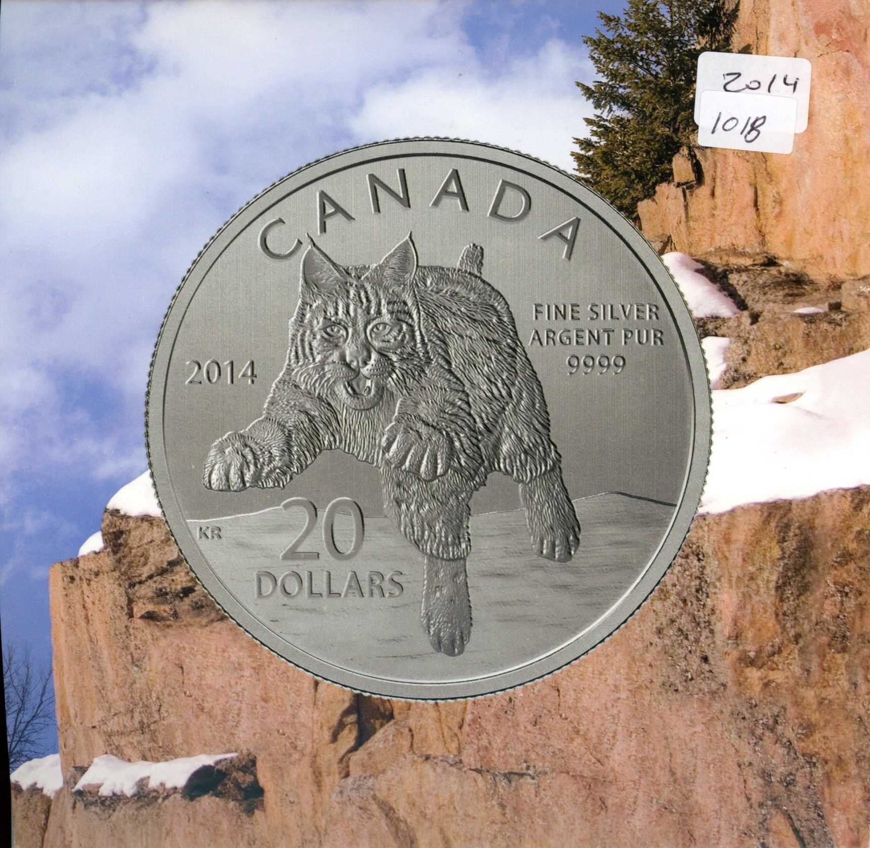 2014 Lynx Silver $20. .9999 pure silver. Housed in folder of issue.