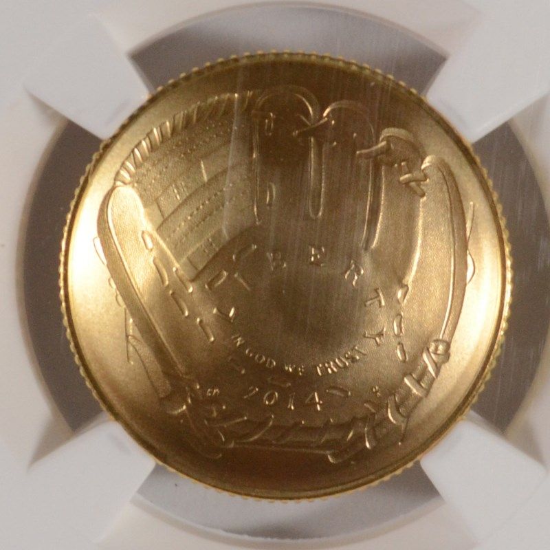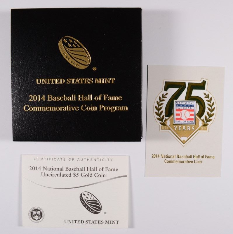 2014 NATIONAL BASEBALL HALL OF FAME $5.00 GOLD COMMEMORATIVE, NGC GRADED MS-69!