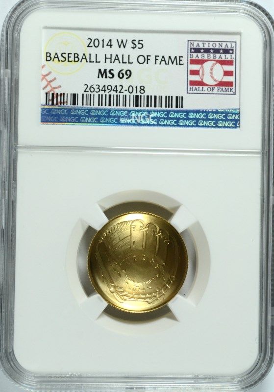 2014 NATIONAL BASEBALL HALL OF FAME $5.00 GOLD COMMEMORATIVE, NGC GRADED MS-69!