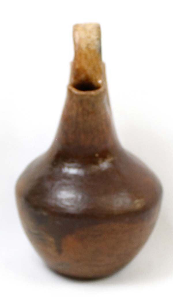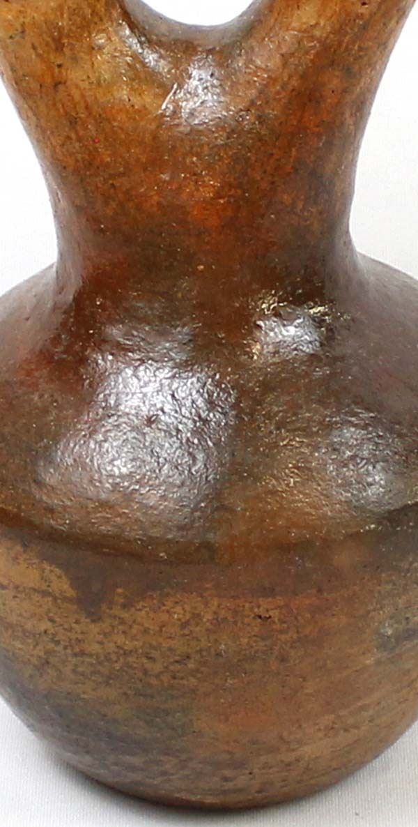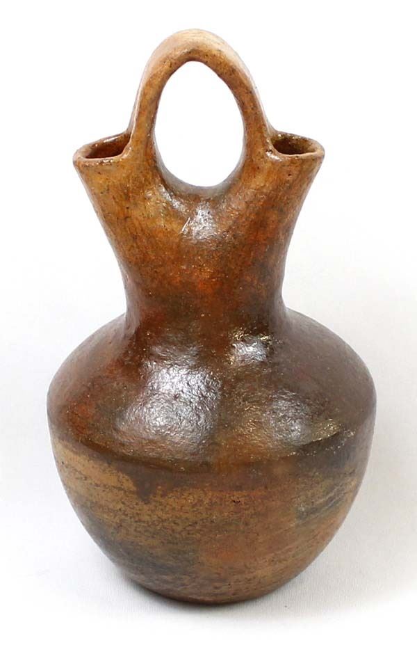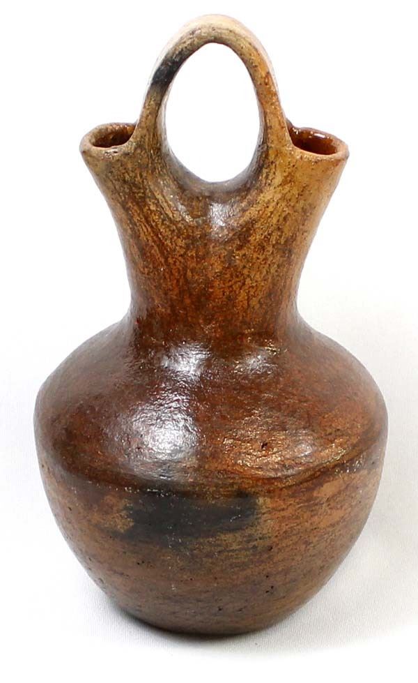 2014 Native American Navajo Pine Pitch Pottery Wedding Vase by Larrisena Manygoats, measures 5'' x 8.5'' and has artist's initials on the bottom