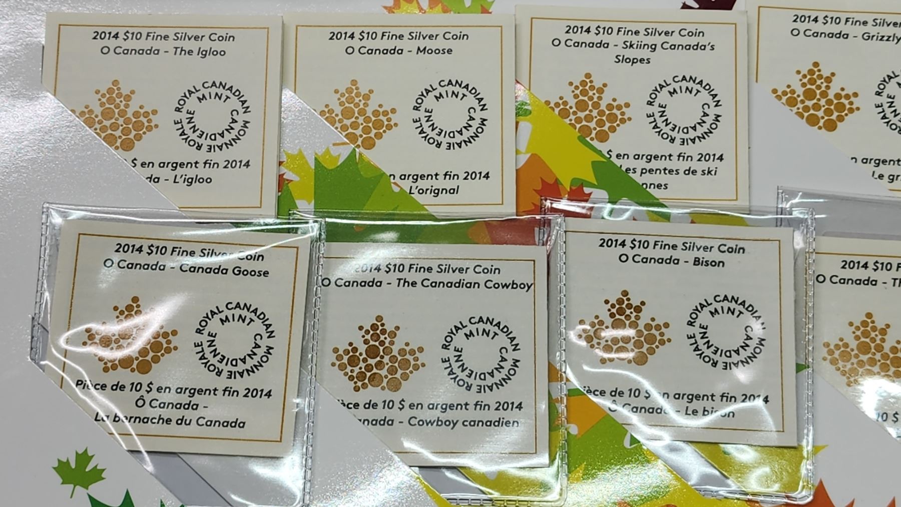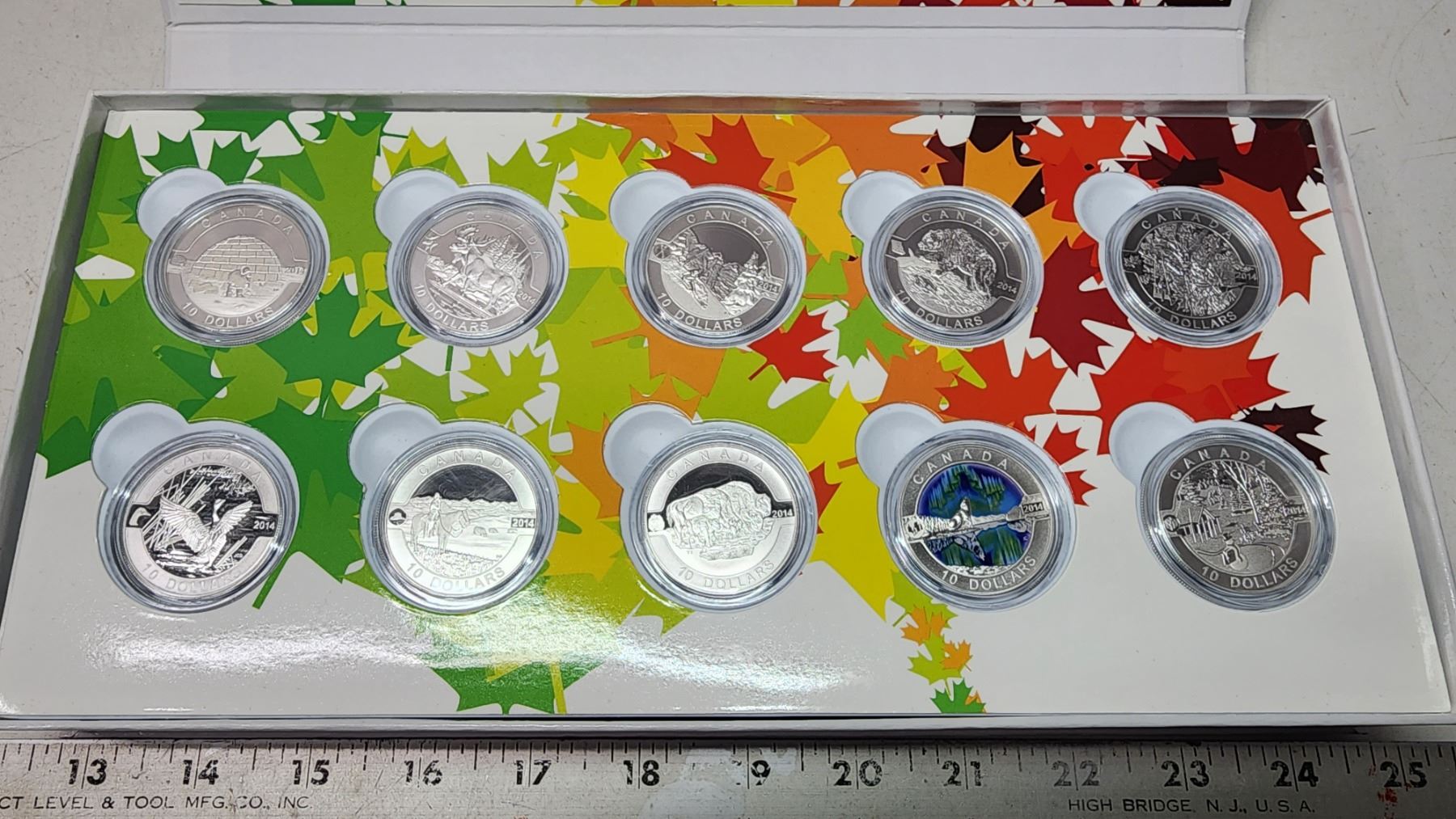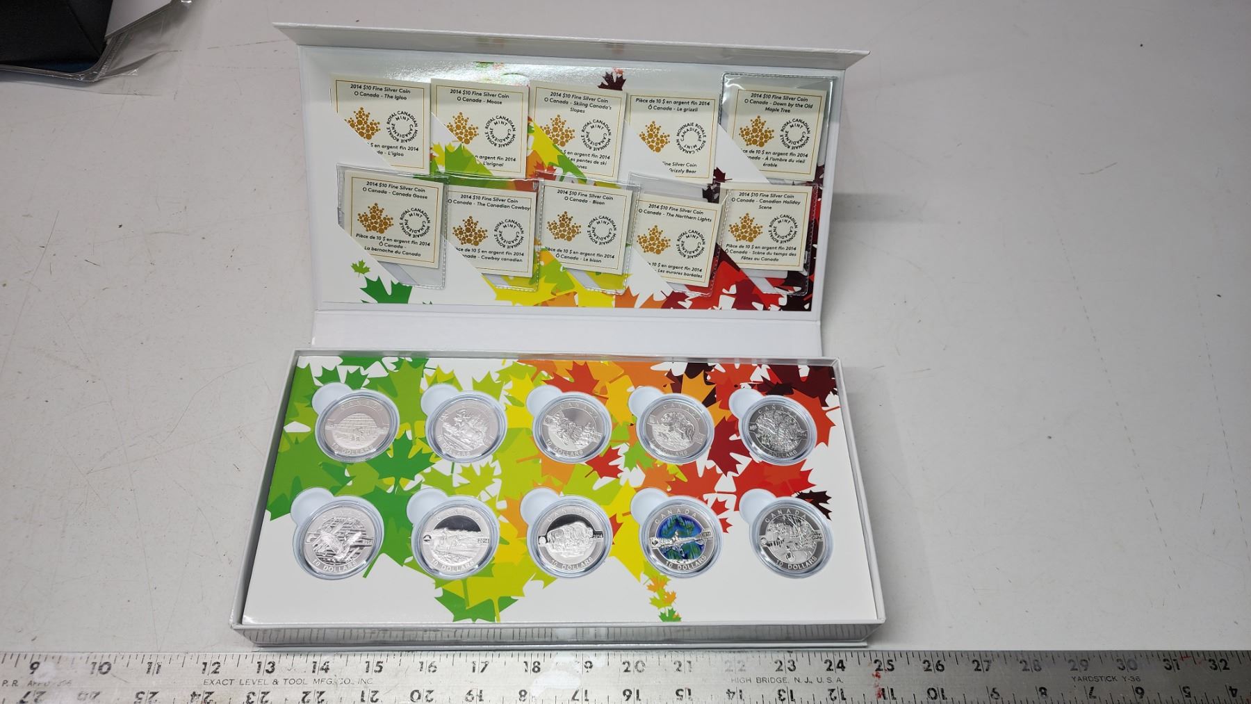 2014 O Canada 10pc, 10 dollar, fine silver coin set - in case