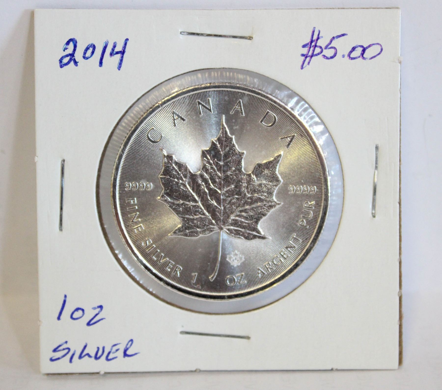 2014 ONE OZ SILVER $5.00 MAPLE LEAF COIN