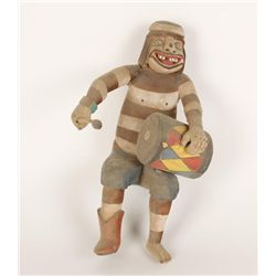 (1) Tewa Clown by Fred Chapella. Carved of all wood, then hand painted. Kachina has one cowboy boot on and is playing a drum. (1) Deer hand made all w