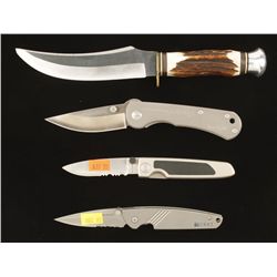 One Wildcat (from Solingen, Germany) sheath knife, one Kershaw Liner Action, one Kershaw Ti ATS34 and one CRKT Mirage.