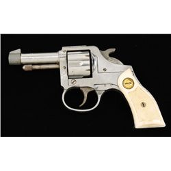 Six-shot double action solid frame revolver. Alloy frame and barrel with scratched chrome plating. Steel barrel liner, cylinder, hammer and trigger. P