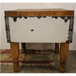 Homemade from an old enameled wash tub to which legs and the butcher block top were added. Measure approx. 30-1/2" by 30-1/2" by 31" ...