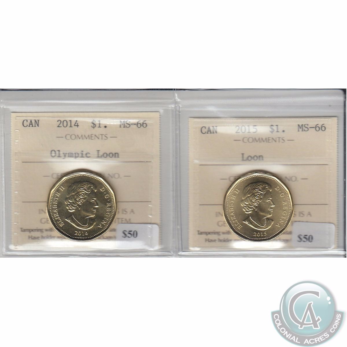 2014 Olympic Loon & 2015 Reg Loon $1 Both ICCS Certified MS-66 (2pcs)