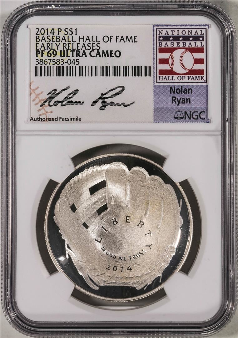 One 2014-P $1 Baseball HOF Silver Dollar Coin NGC PF69 Ultra Cameo Nolan Ryan Signature. NGC Certified.