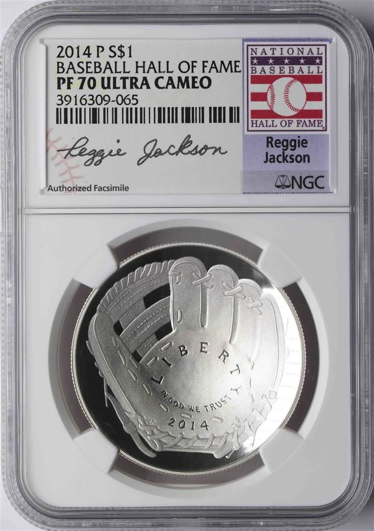 One 2014-P $1 Baseball Hall of Fame Coin NGC PF70 Ultra Cameo Reggie Jackson. NGC Certified.