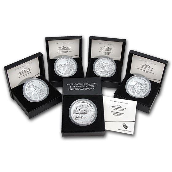 One piece 2014-P 5-Coin 5 oz Silver Burnished ATB Set (w/Box & COA)