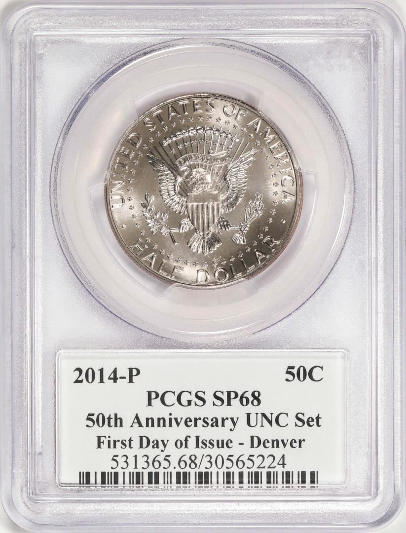 One 2014-P 50th Anniversary UNC Set Kennedy Half Dollar Coin PCGS SP68 FDOI Denver. PCGS Graded.