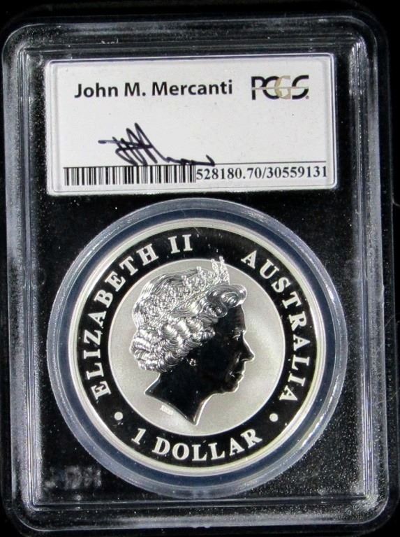 PCGS MS 70 MERCANTI SIGNED. IN BOX.