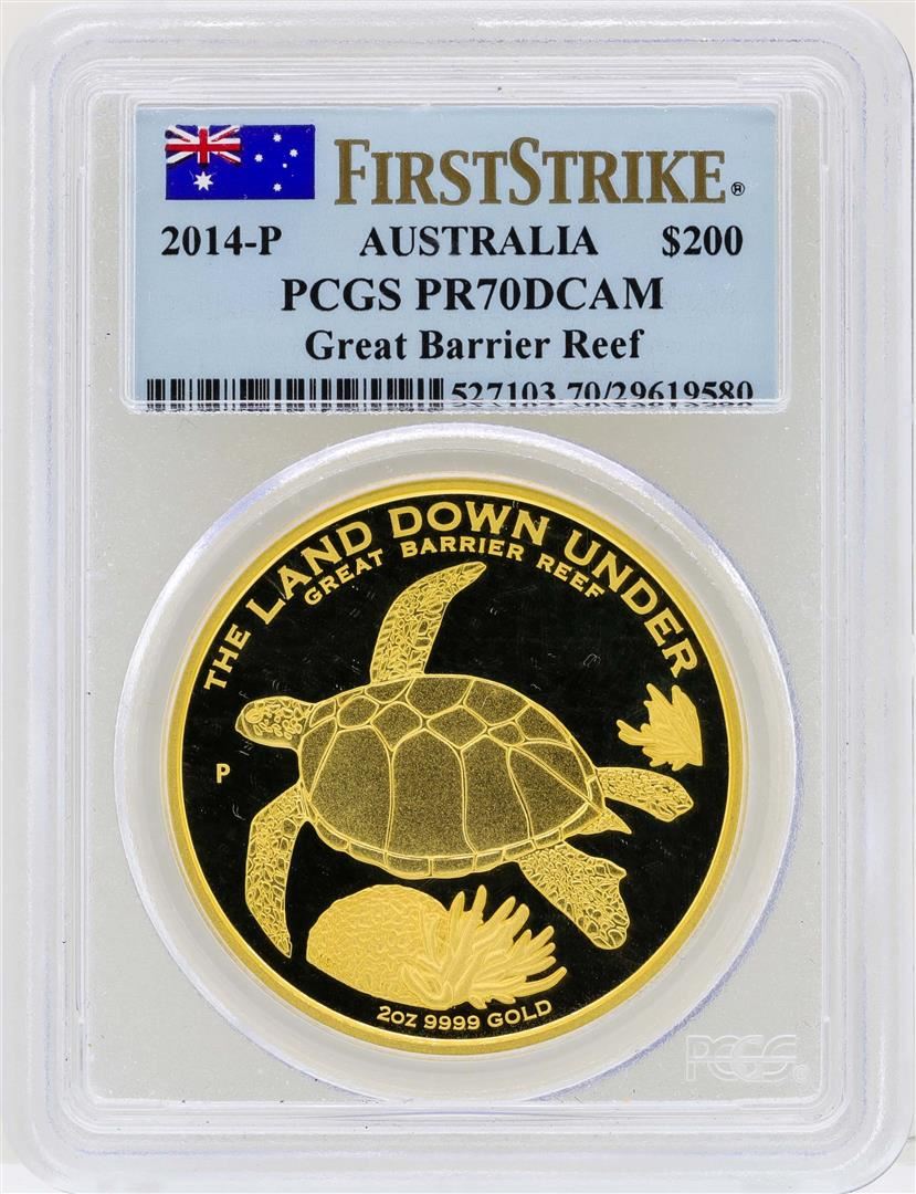 One 2014-P Australia $200 Great Barrier Reef Gold Coin PCGS PR70DCAM First Strike. PCGS Graded.