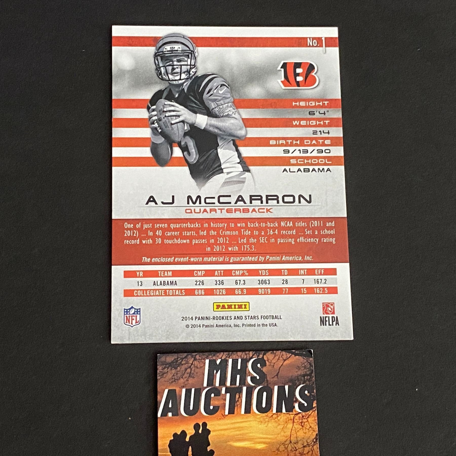 2014 PANINI AJ McCARRON ROOKIE JERSEY CARD