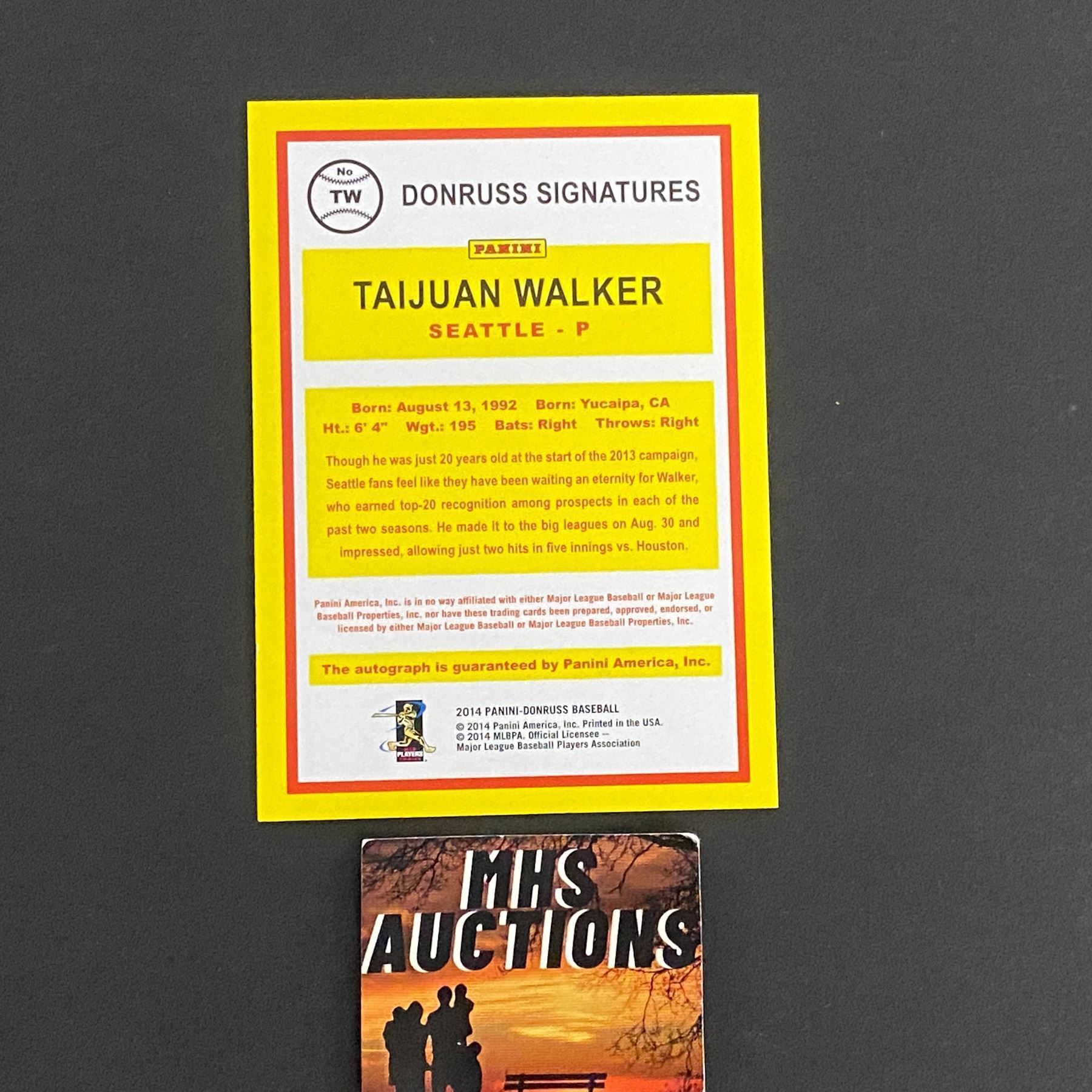 2014 PANINI AUTOGRAPH CARD TAIJUAN WALKER BASEBALL CARD
