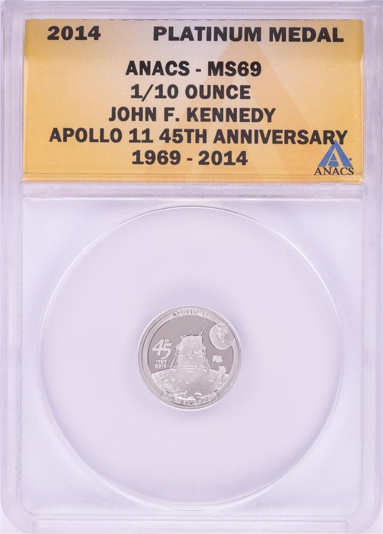 2014 Proof 1/10 oz Platinum JFK Apollo 11 Anniversary Medal ANACS MS68
