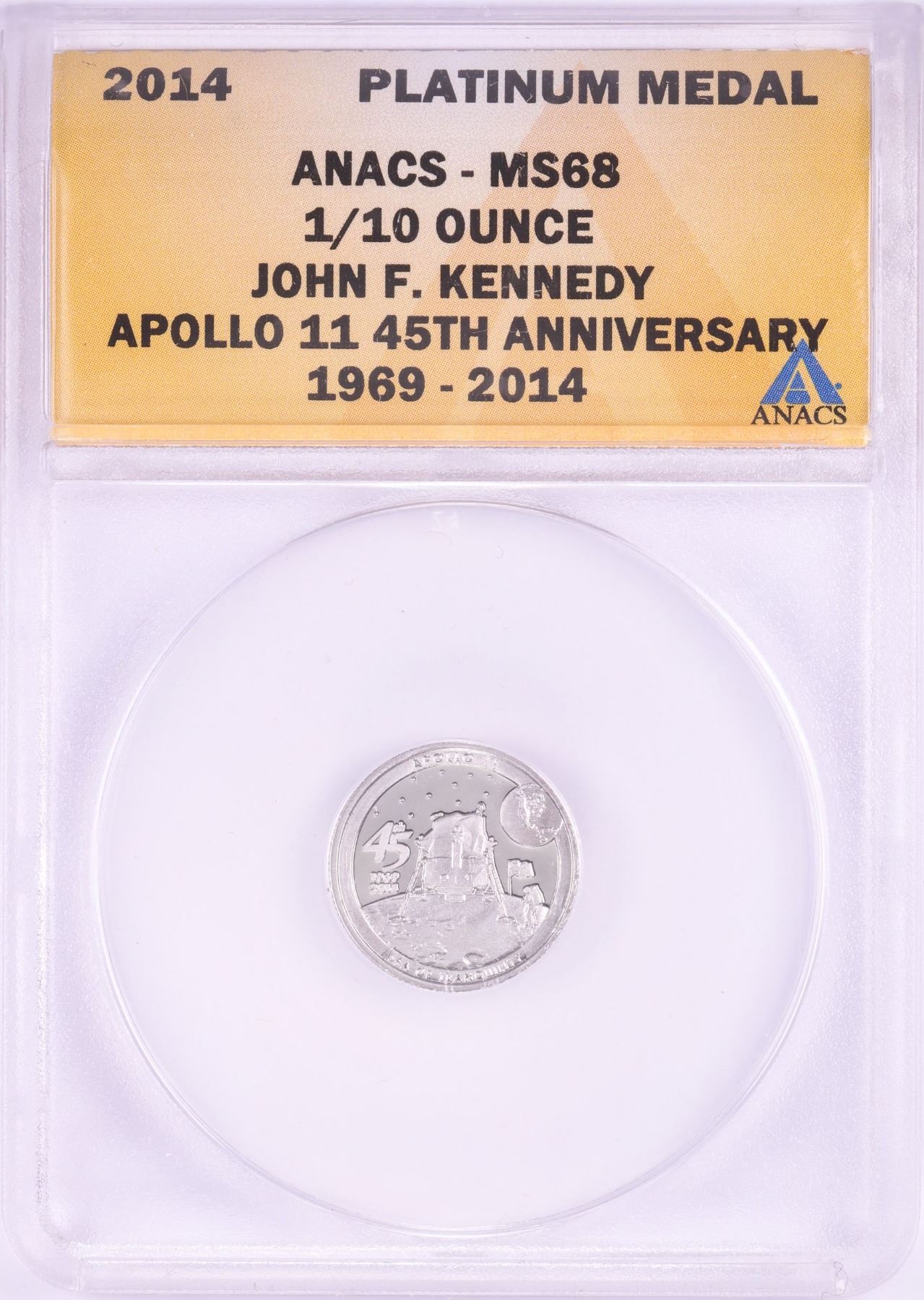 2014 Proof 1/10 oz Platinum JFK Apollo 11 Anniversary Medal ANACS MS68