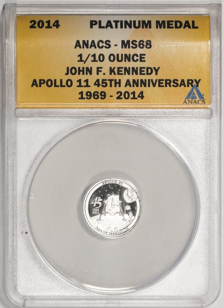 2014 Proof 1/10 oz Platinum JFK Apollo 11 Anniversary Medal ANACS MS68