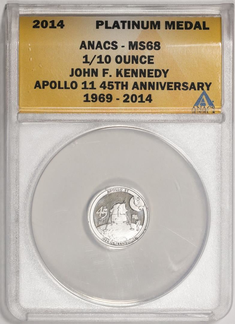 2014 Proof 1/10 oz Platinum JFK Apollo 11 Anniversary Medal ANACS MS68