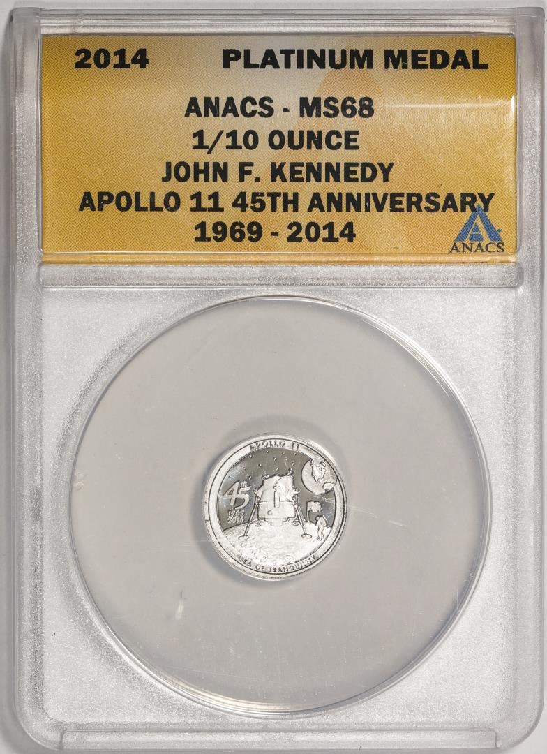 2014 Proof 1/10 oz Platinum JFK Apollo 11 Anniversary Medal ANACS MS68