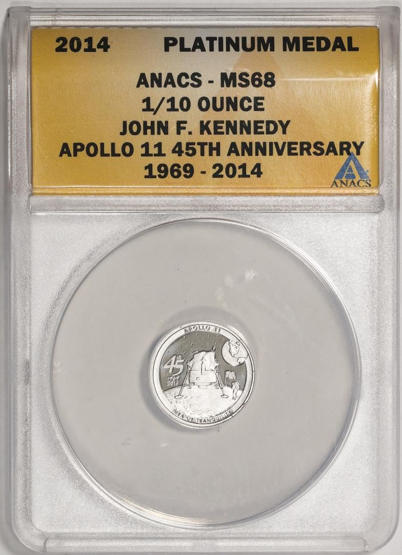 2014 Proof 1/10 oz Platinum JFK Apollo 11 Anniversary Medal ANACS MS68