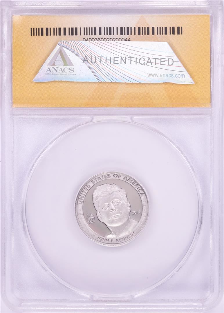 One 2014 Proof 1/4 oz Platinum JFK Apollo 11 Anniversary Medal ANACS MS69. ANACS Certified.