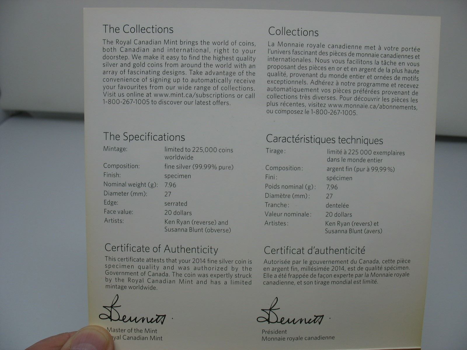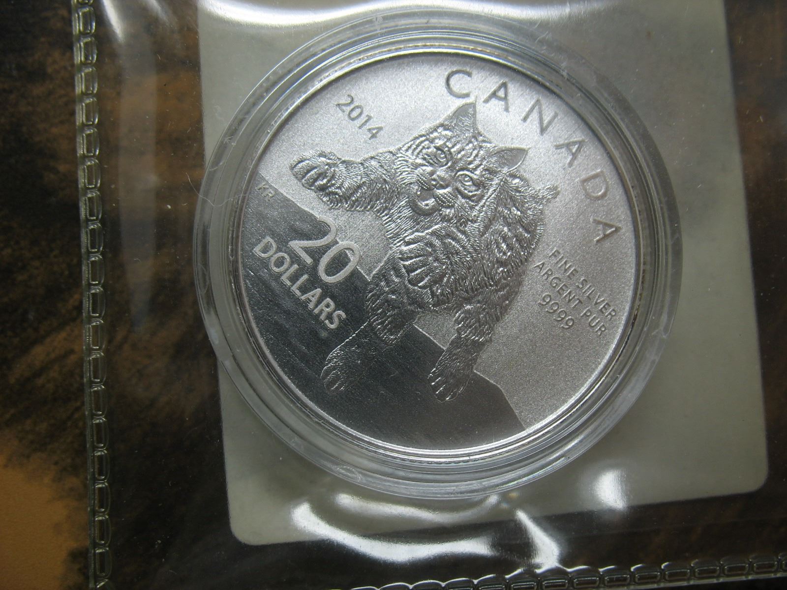 2014 ROYAL CANADIAN MINT $20 SILVER COIN (99.99 pure) - BOBCAT