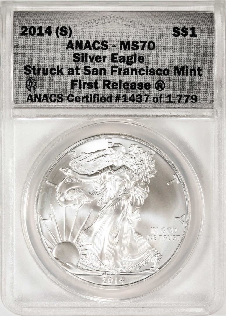 2014-(S) $1 American Silver Eagle Coin ANACS MS70 First Release San Francisco