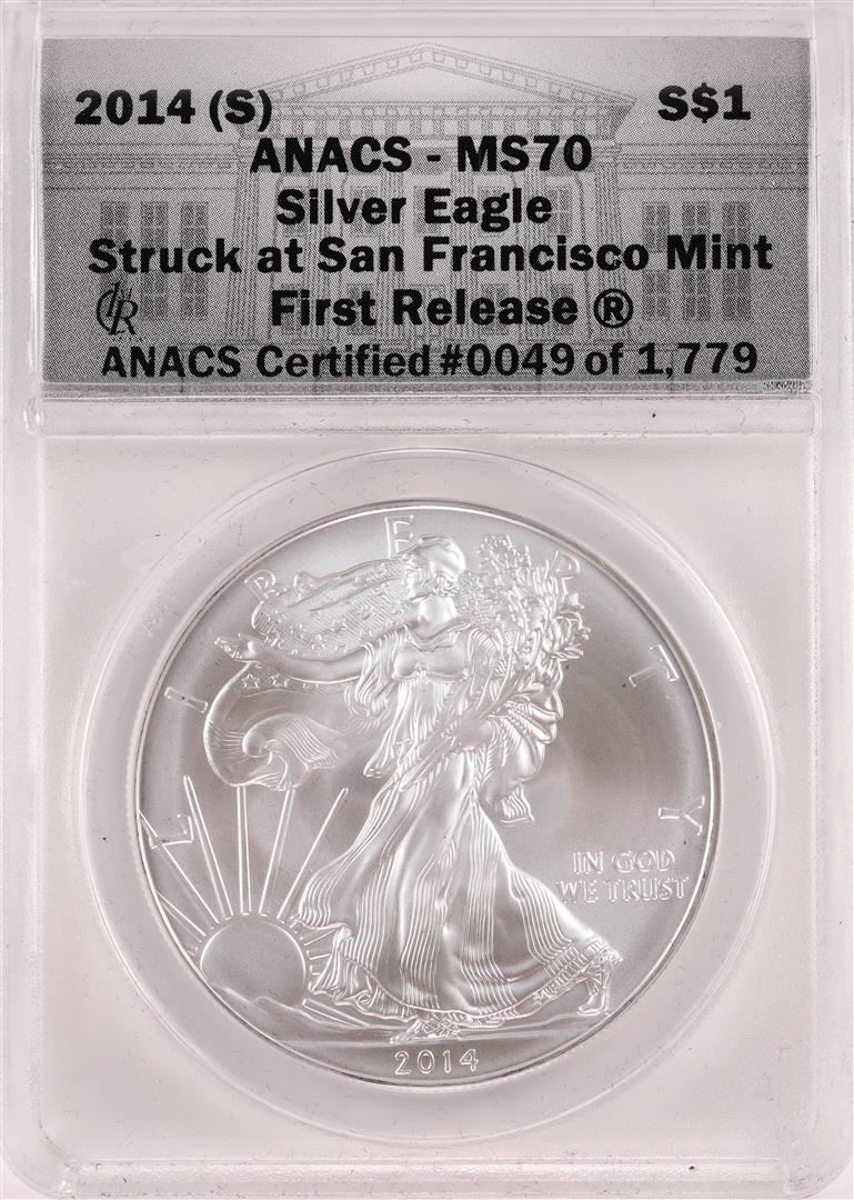 2014-(S) $1 American Silver Eagle Coin ANACS MS70 First Release
