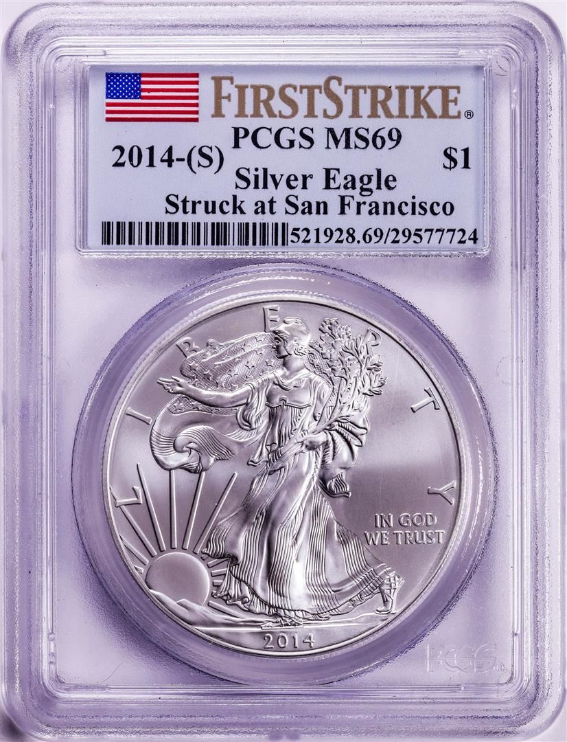 One 2014-(S) $1 American Silver Eagle Coin PCGS MS69 First Strike San Francisco Mint. PCGS Graded.