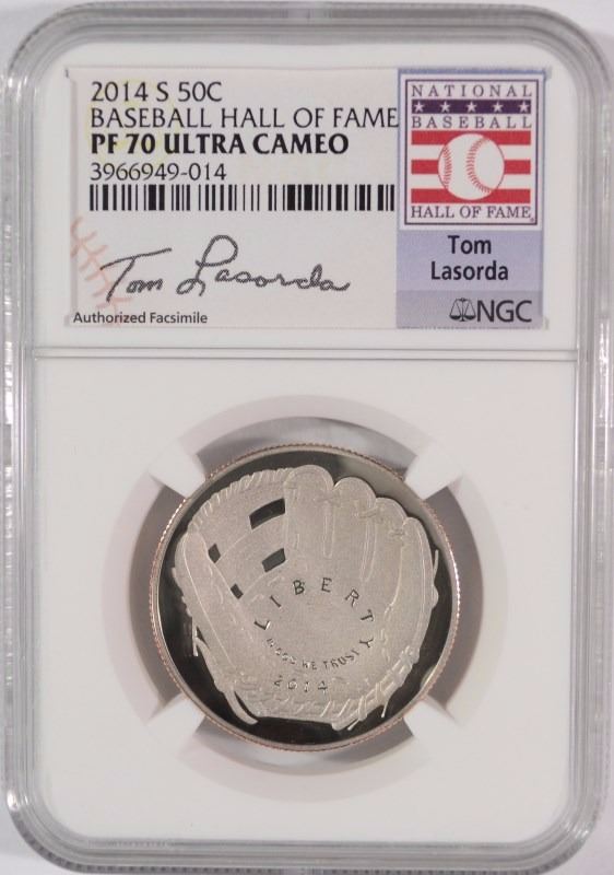 2014-S BASEBALL HALL OF FAME COMMEM HALF DOLLAR, NGC PF-70 U.C. TOM LASORDA