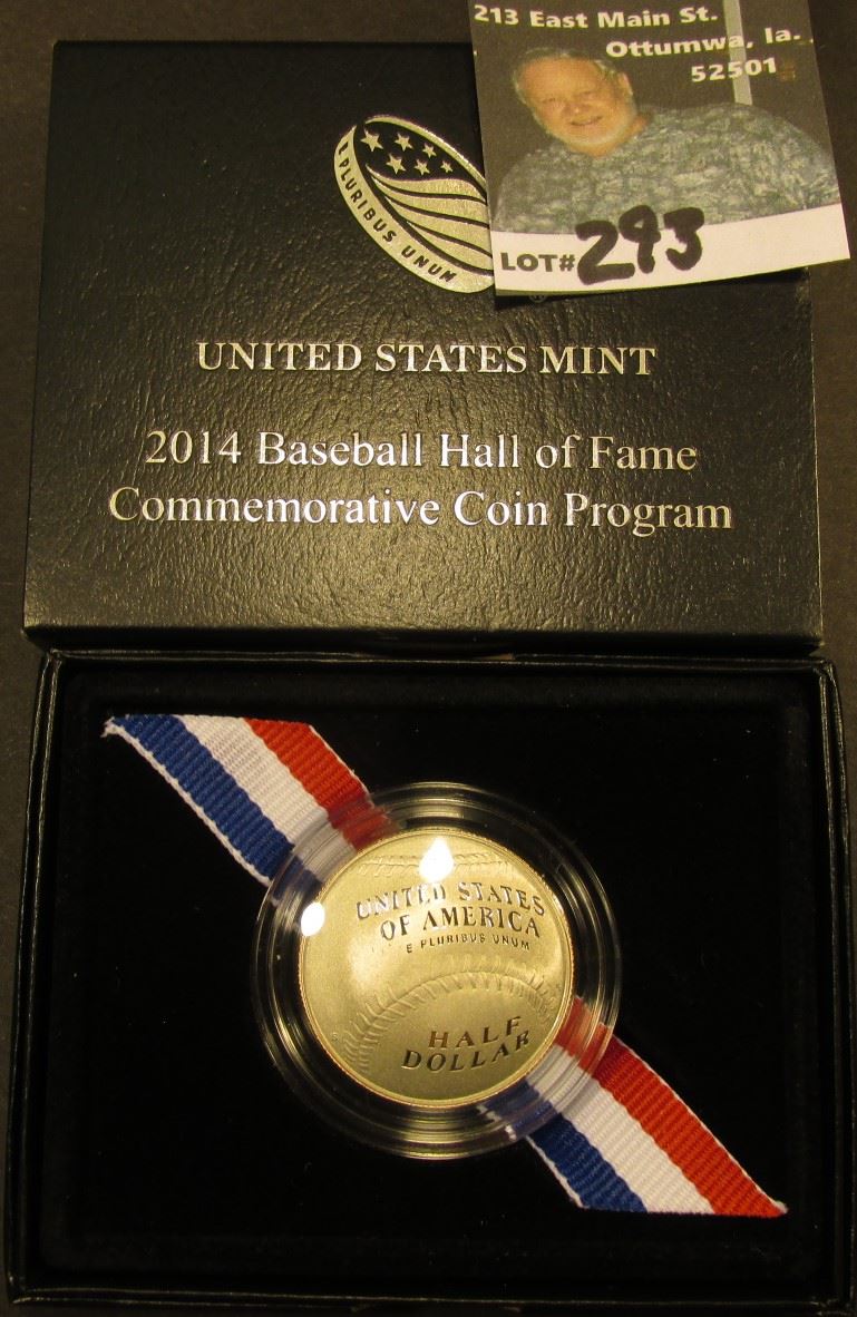 2014 S Cupped design Baseball Half-Dollar. Gem Proof. In original box of issue.