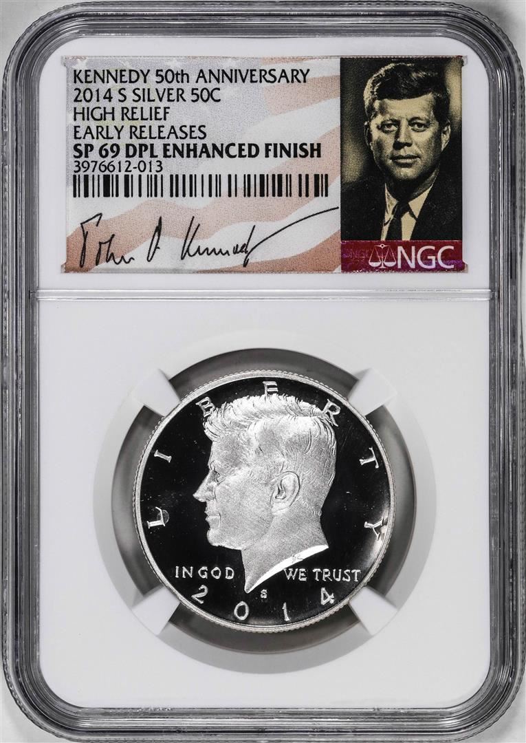 2014-S High Relief Kennedy Half Dollar Coin NGC SP69 DPL Enhanced Finish Kennedy Signed