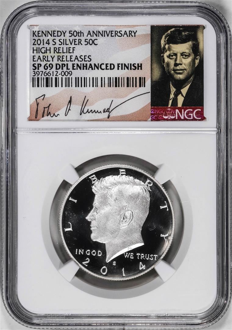 2014-S High Relief Kennedy Half Dollar Coin NGC SP69 DPL Enhanced Finish Kennedy Signed