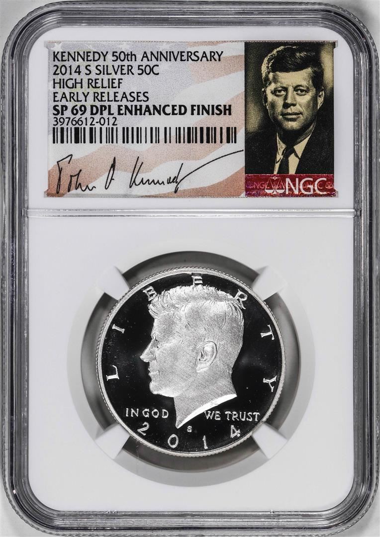 2014-S High Relief Kennedy Half Dollar Coin NGC SP69 DPL Enhanced Finish Kennedy Signed