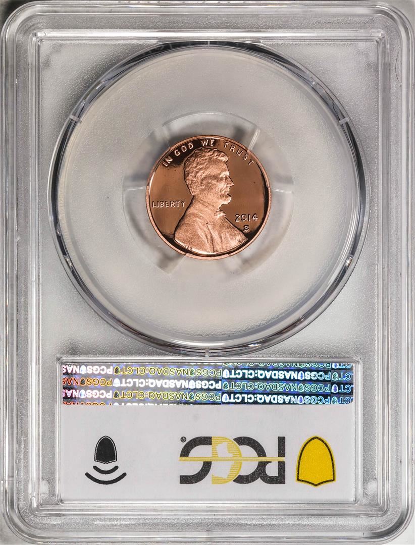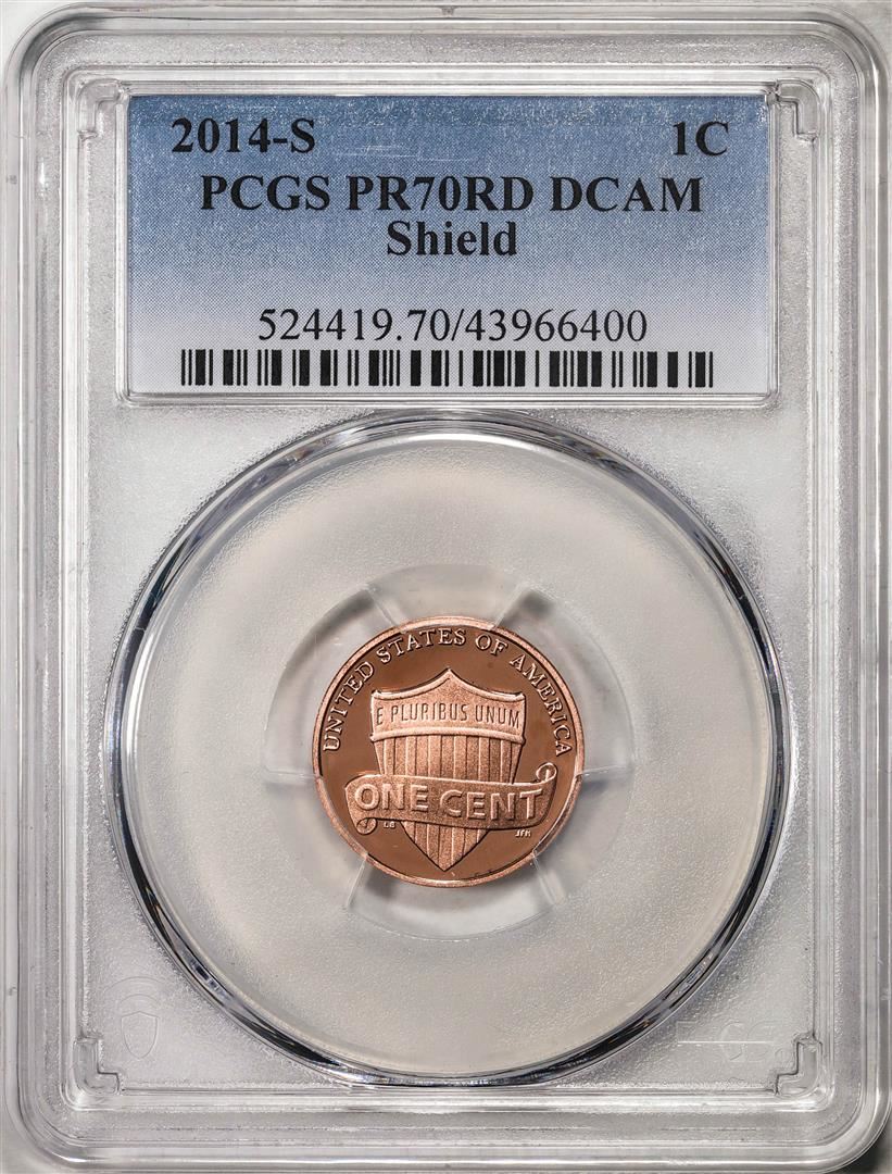 One 2014-S Proof Lincoln Shield Cent Coin PCGS PR70RD DCAM. PCGS Graded.