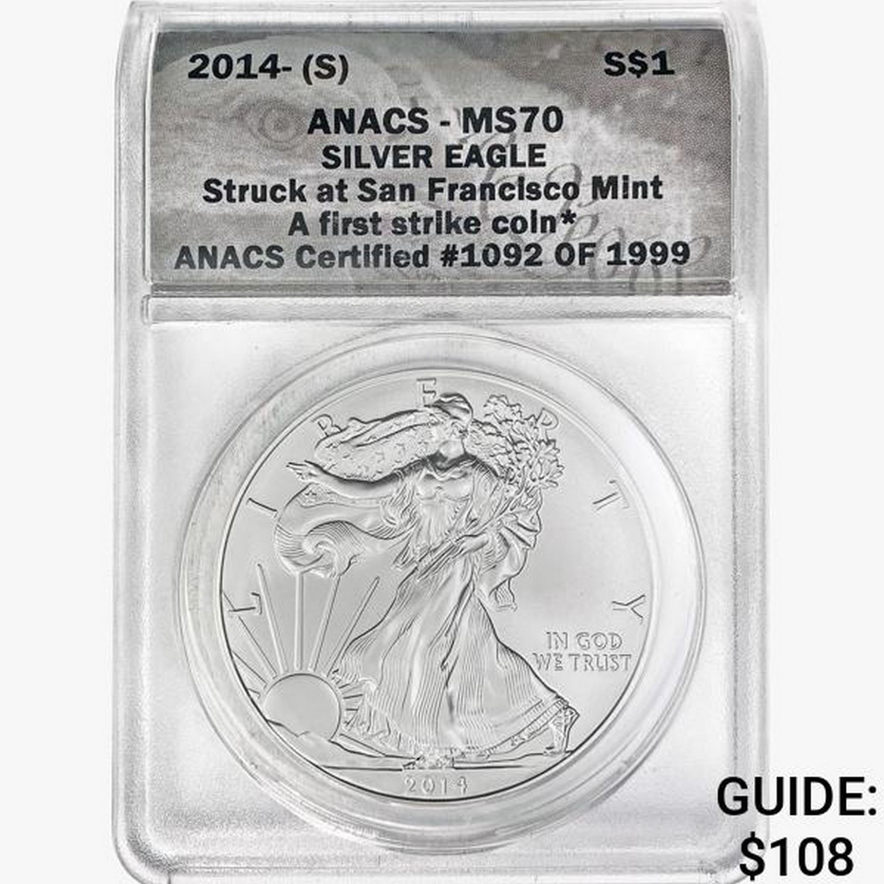 2014-S Silver Eagle ANACS MS70
